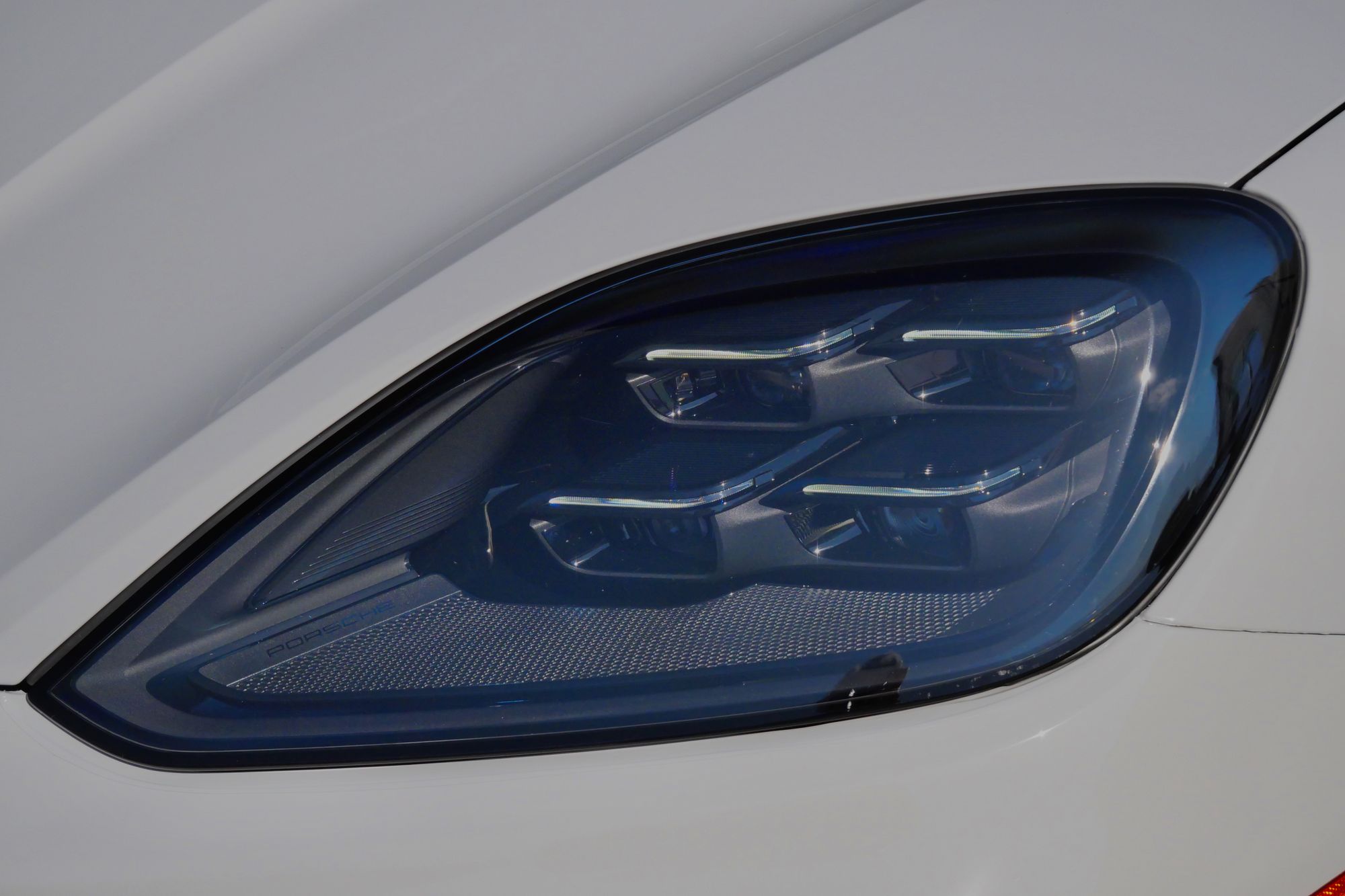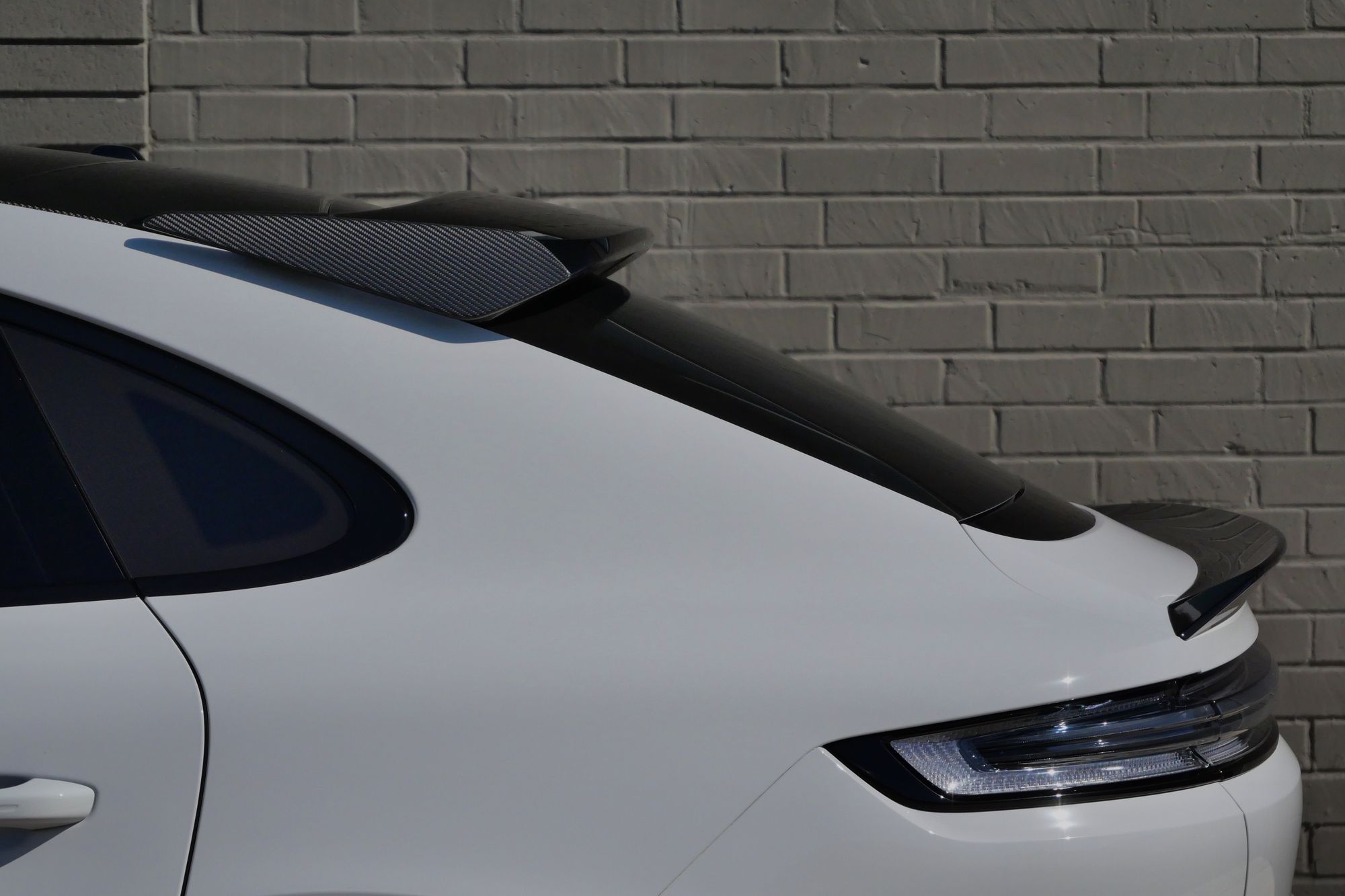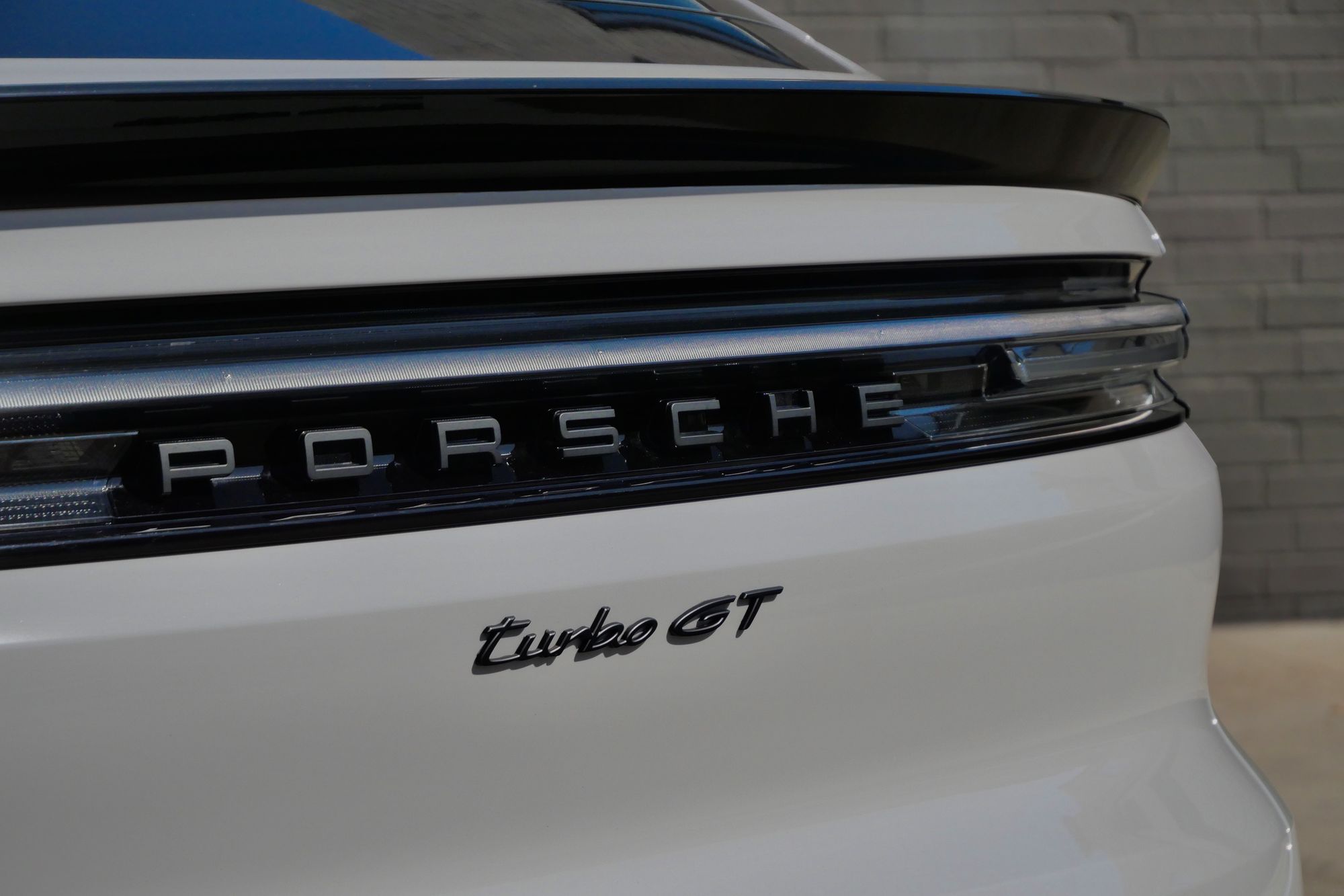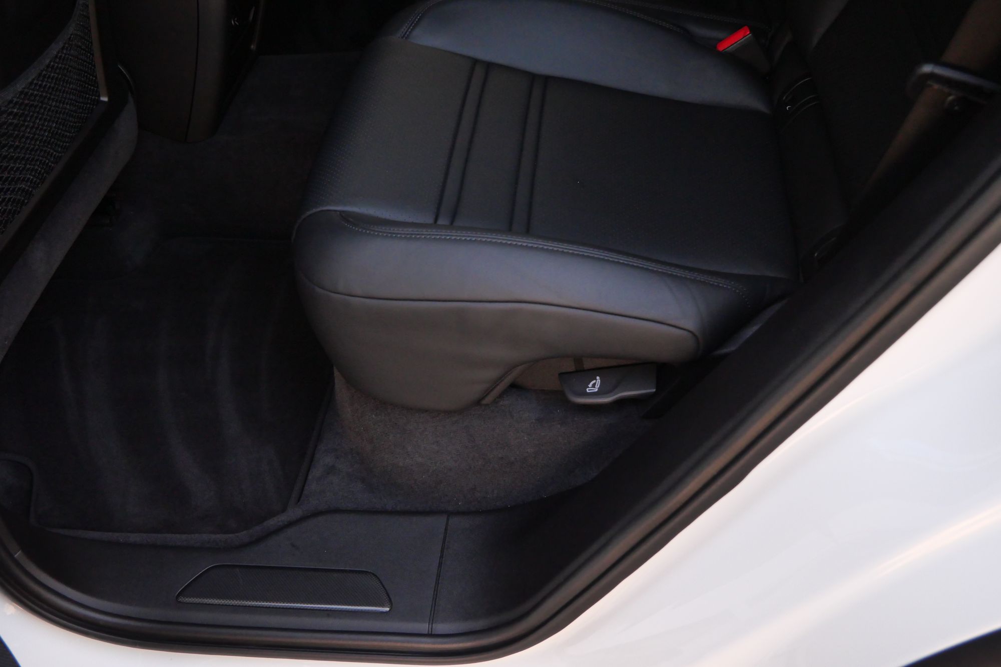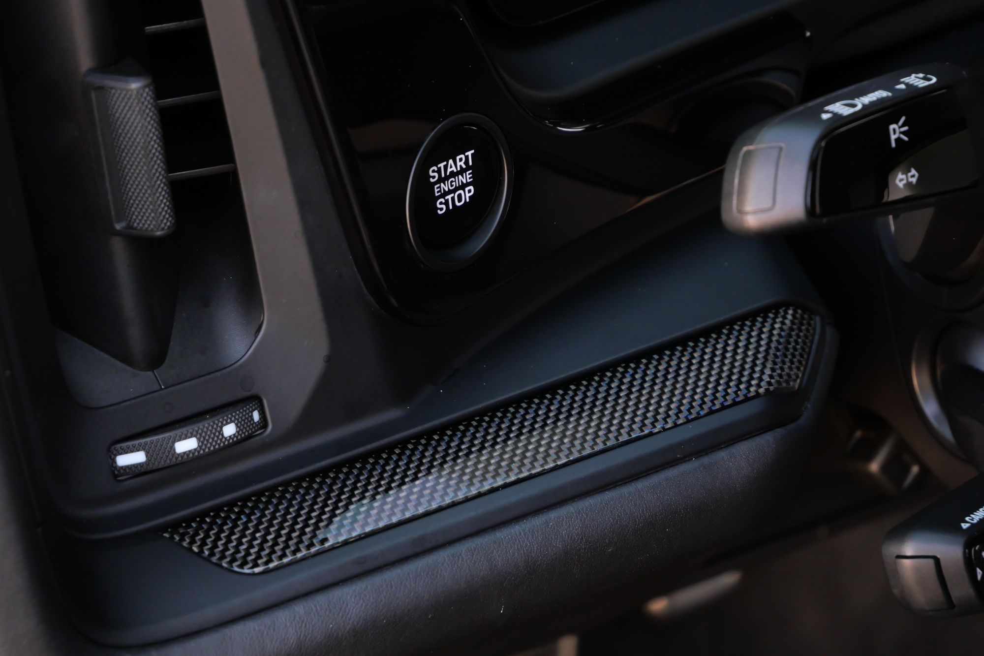Black leather extends from the heated 18-way Adaptive Sports Seats Plus front seats to the heated rear seats. Carbon-fiber trim accents the cabin, and amenities include four-zone automatic climate control, front-seat position memory, a Bose surround sound system, illuminated doorsill guards, a surround view camera system, Active Parking Support, and Porsche Communication Management with navigation, voice control, and a 12.3″ touchscreen display.