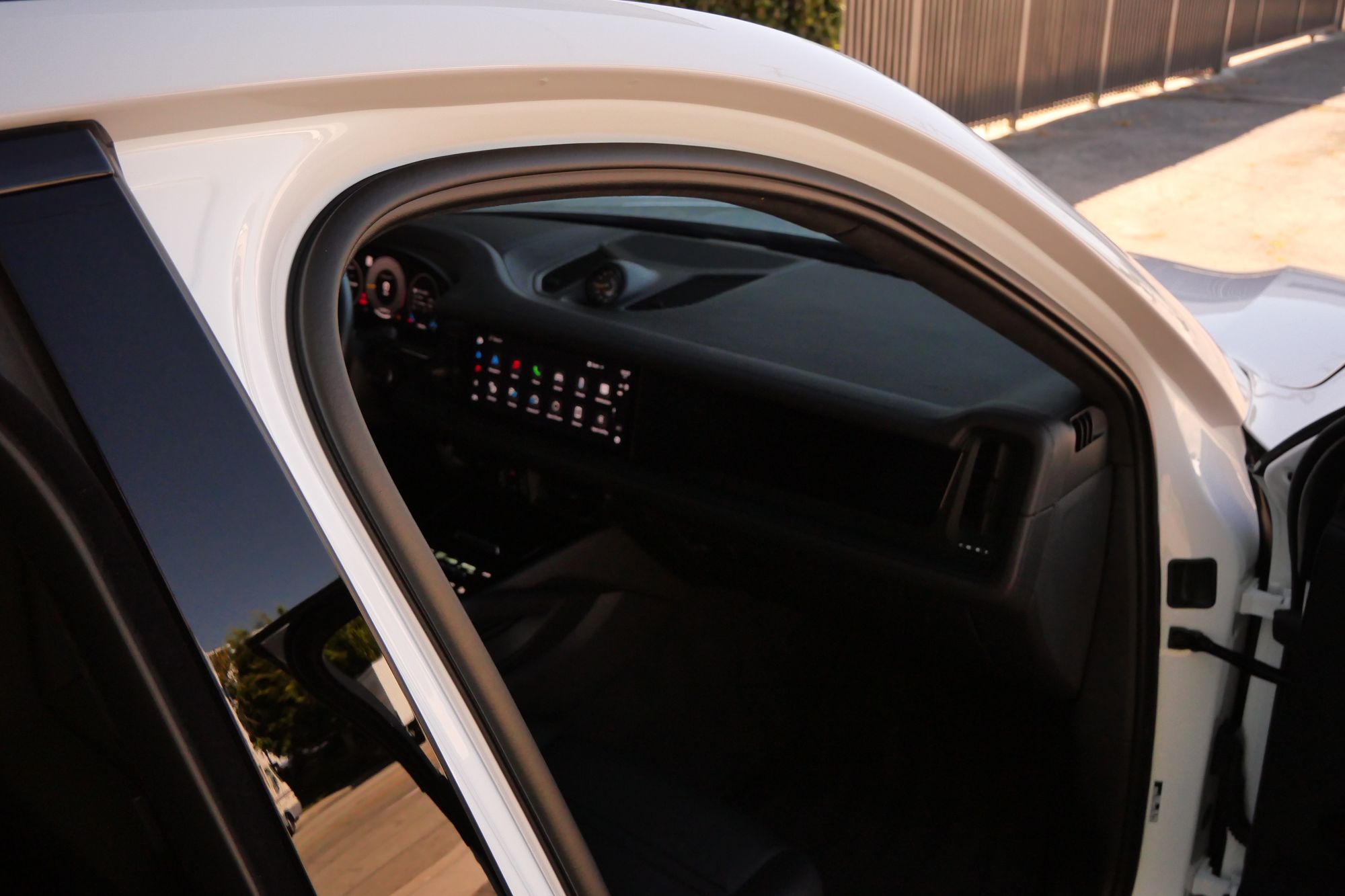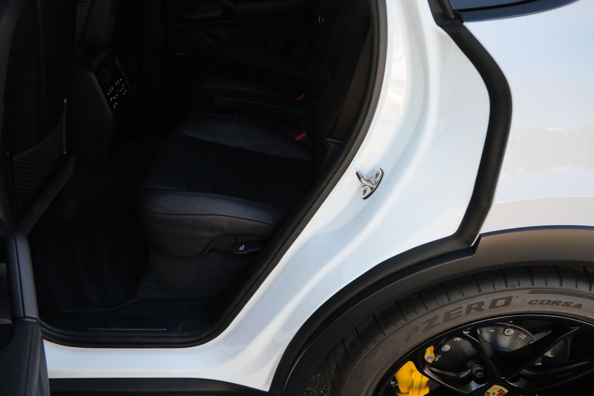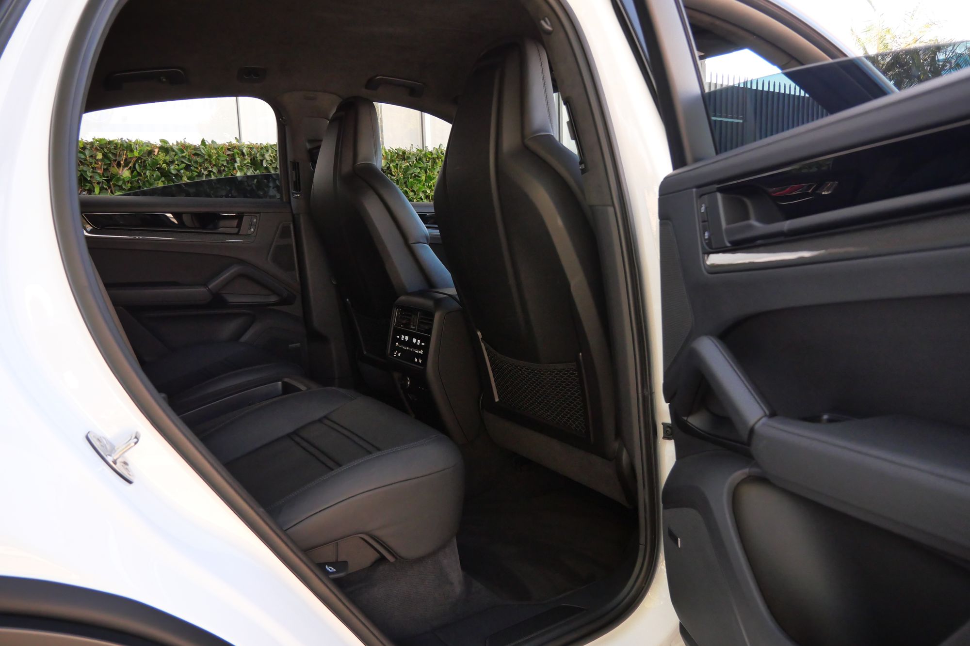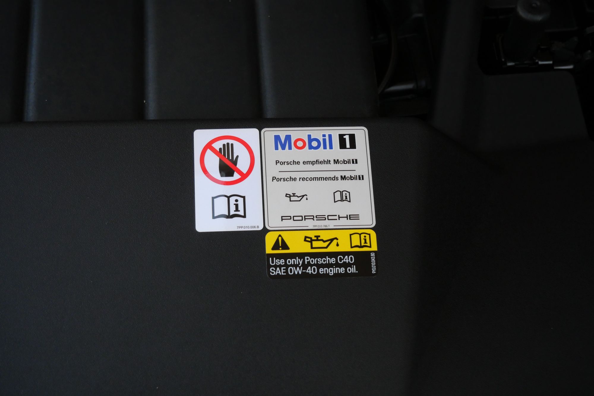 Black leather extends from the heated 18-way Adaptive Sports Seats Plus front seats to the heated rear seats. Carbon-fiber trim accents the cabin, and amenities include four-zone automatic climate control, front-seat position memory, a Bose surround sound system, illuminated doorsill guards, a surround view camera system, Active Parking Support, and Porsche Communication Management with navigation, voice control, and a 12.3″ touchscreen display.