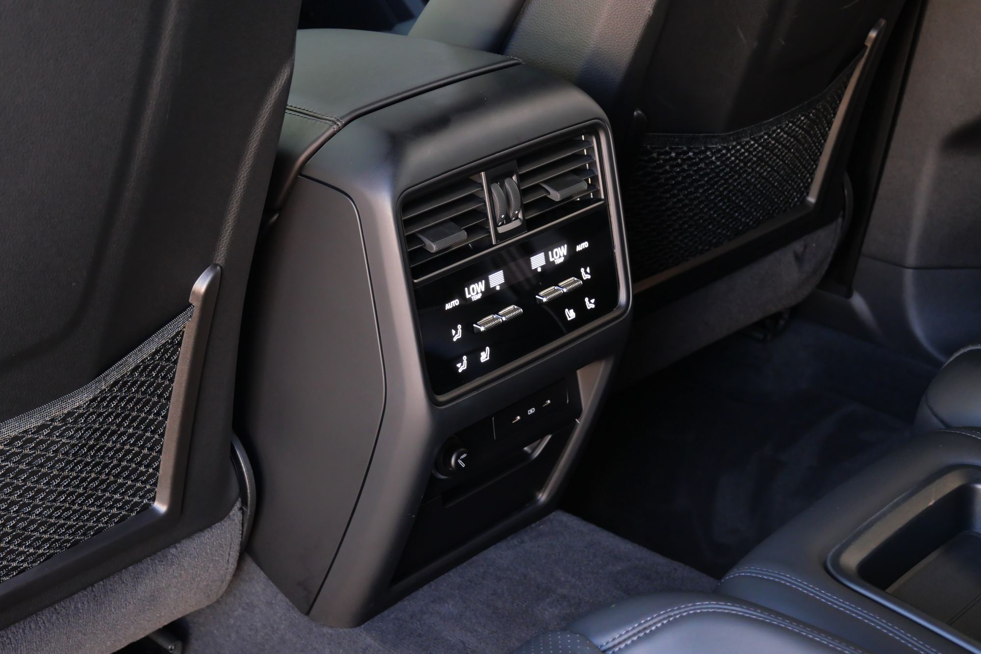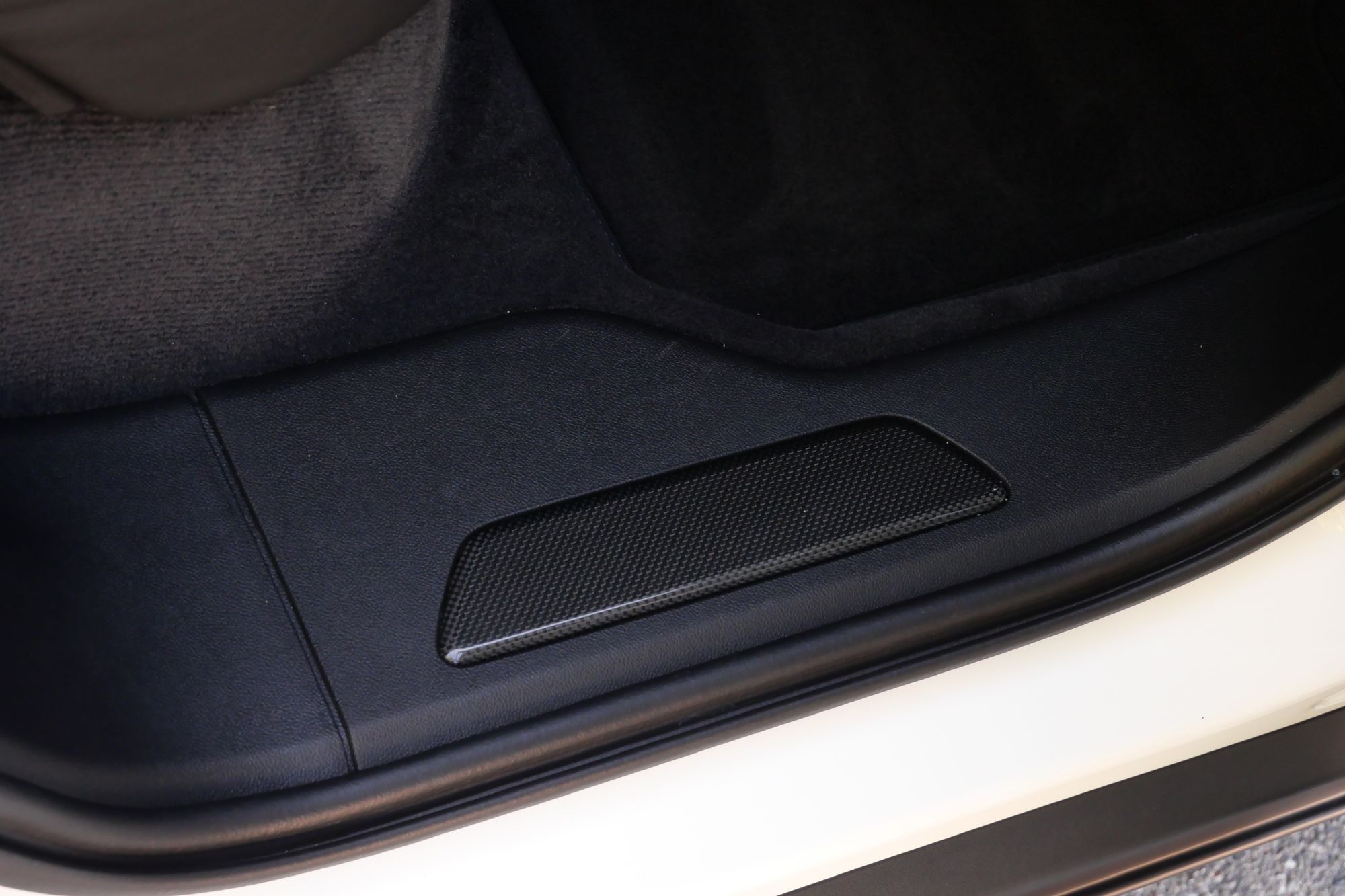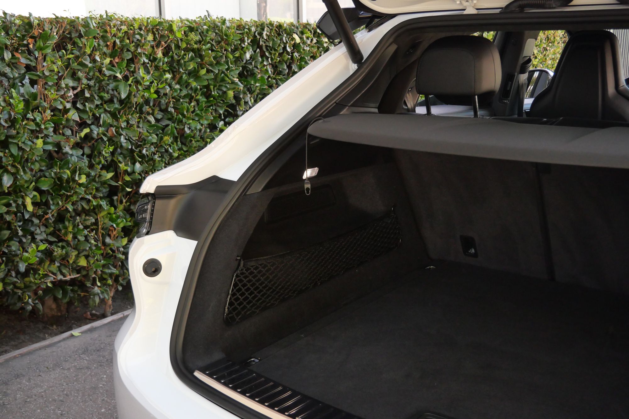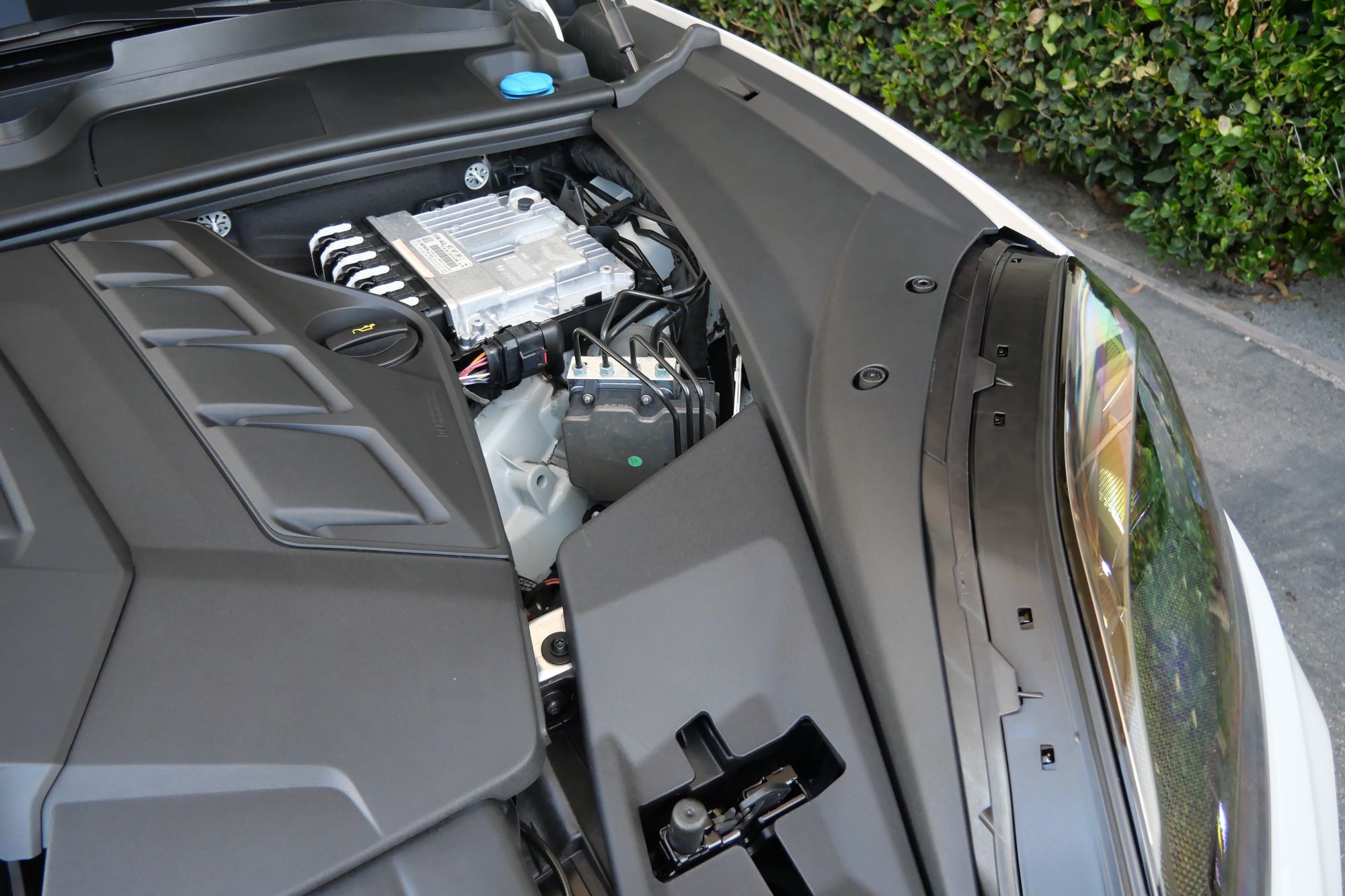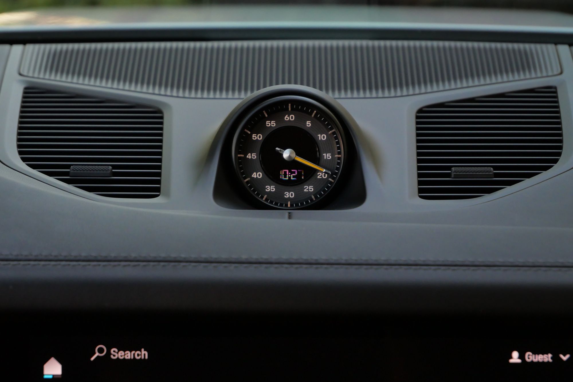 Black leather extends from the heated 18-way Adaptive Sports Seats Plus front seats to the heated rear seats. Carbon-fiber trim accents the cabin, and amenities include four-zone automatic climate control, front-seat position memory, a Bose surround sound system, illuminated doorsill guards, a surround view camera system, Active Parking Support, and Porsche Communication Management with navigation, voice control, and a 12.3″ touchscreen display.
