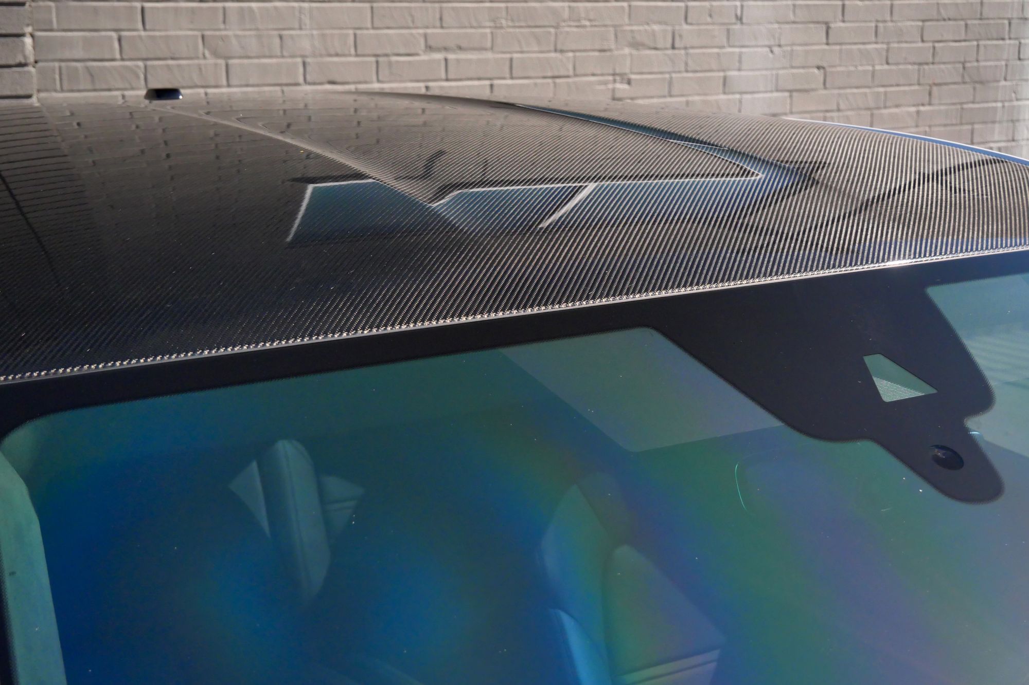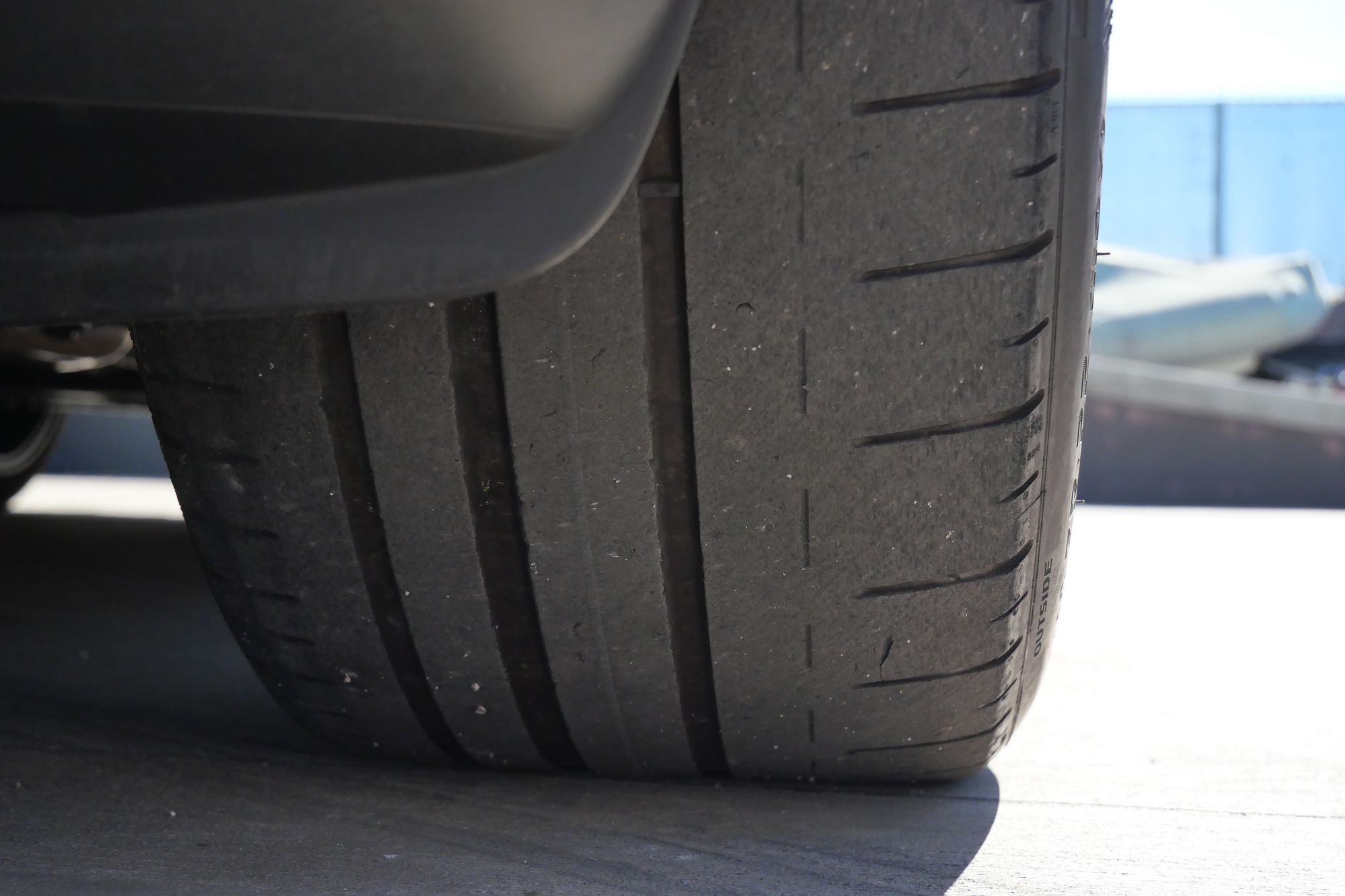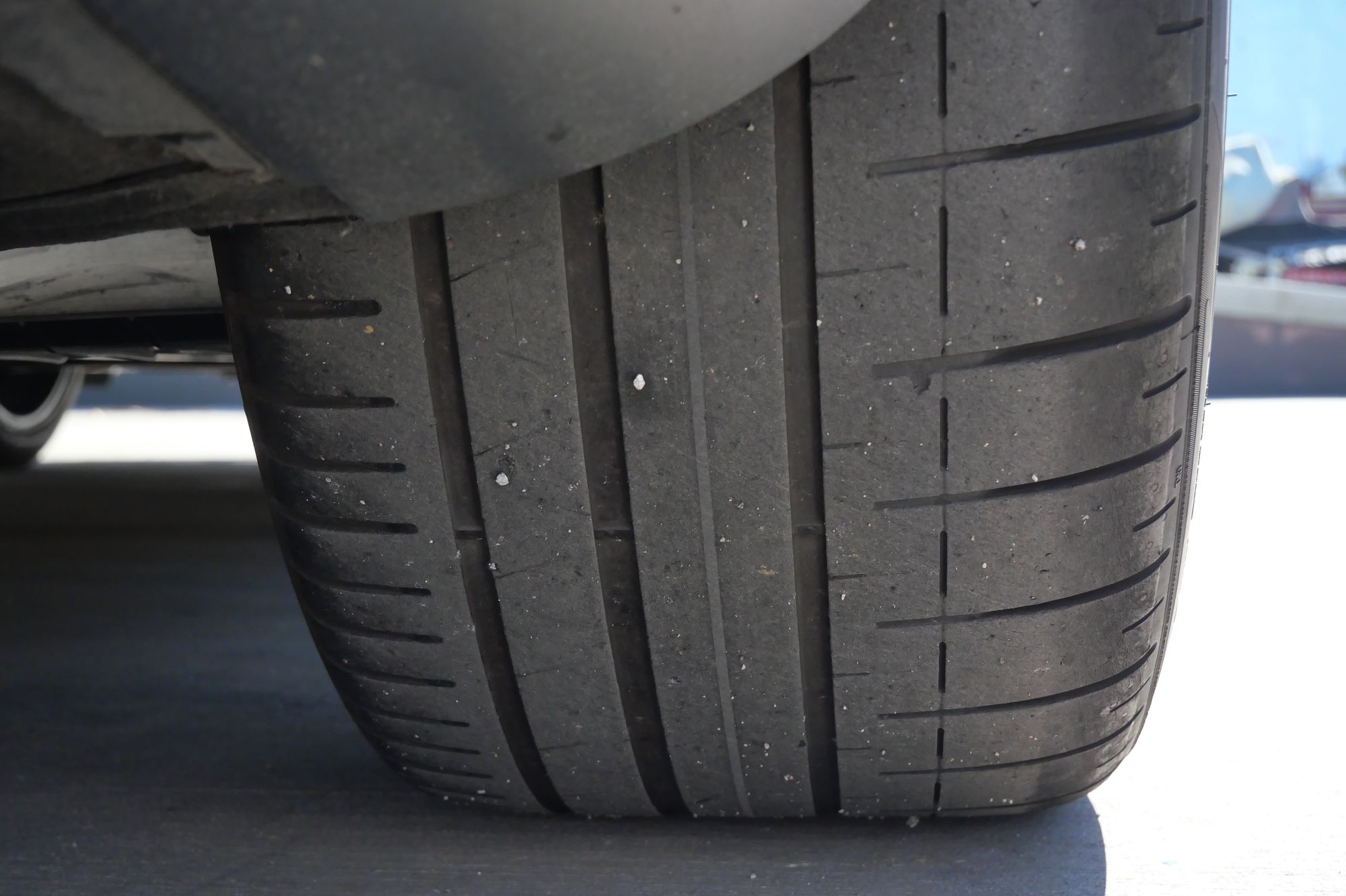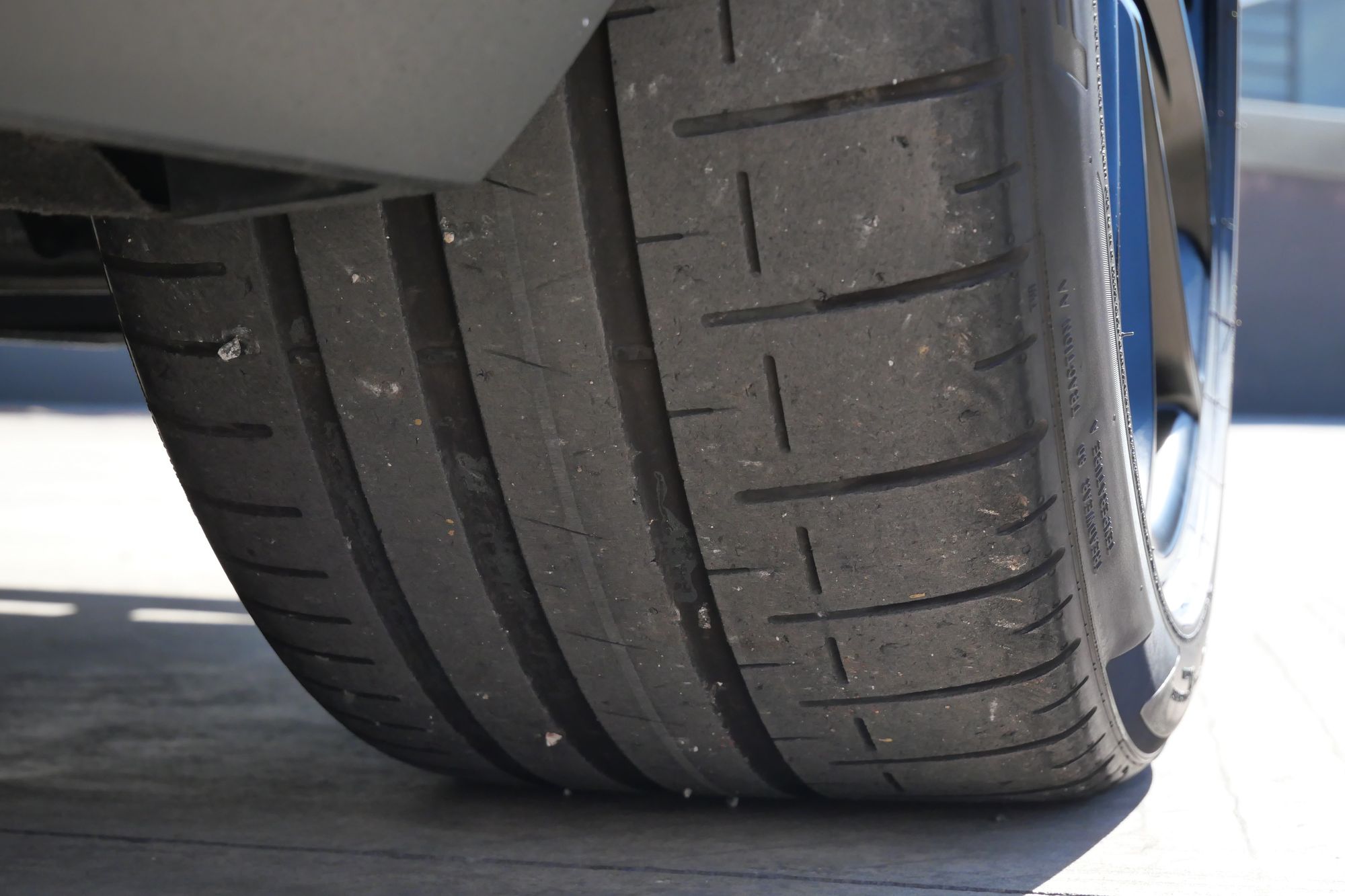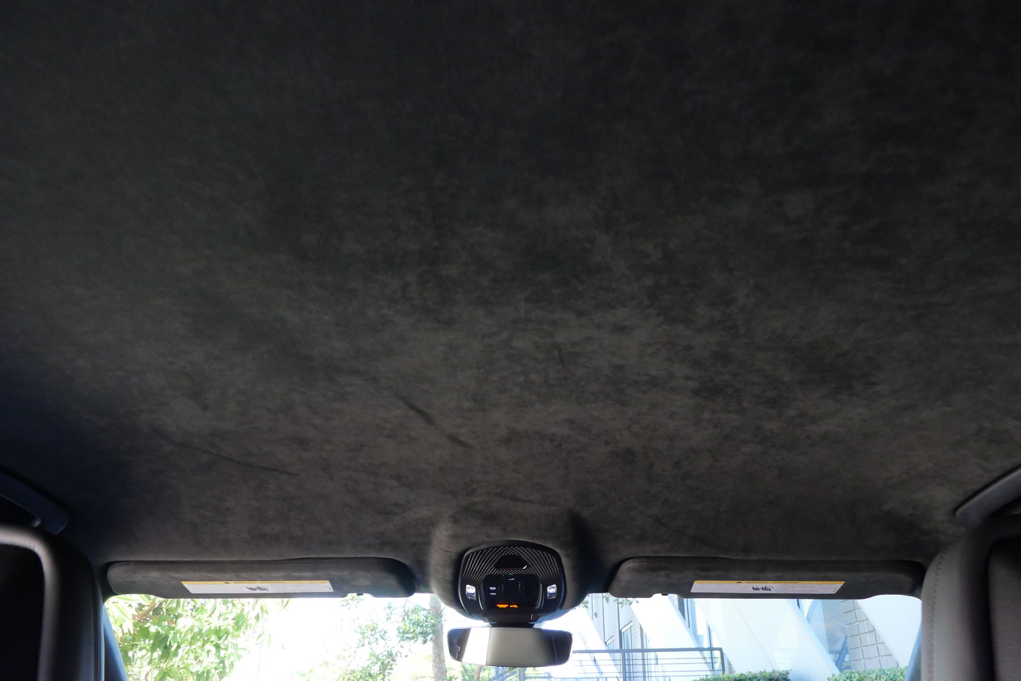 Satin Black-finished 22″ GT Design wheels are mounted with 285/40 front and 315/35 rear Pirelli P Zero Corsa tires. Factory equipment included adjustable air suspension, Porsche Active Suspension Management (PASM), and Porsche Dynamic Chassis Control (PDCC). Braking is provided by Porsche Ceramic Composite Brakes (PCCB) with cross-drilled rotors and yellow-finished calipers.