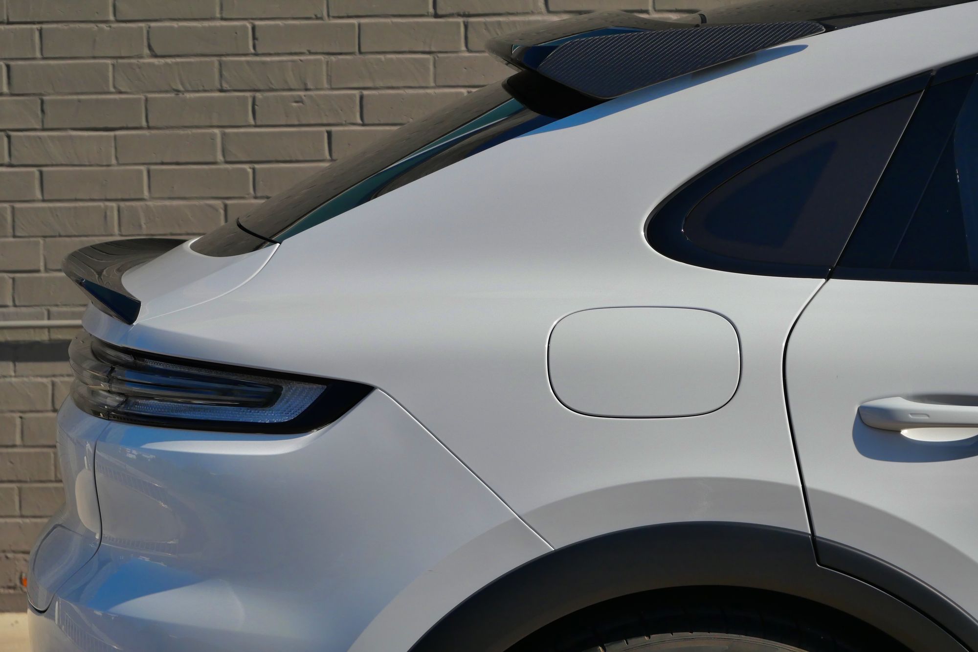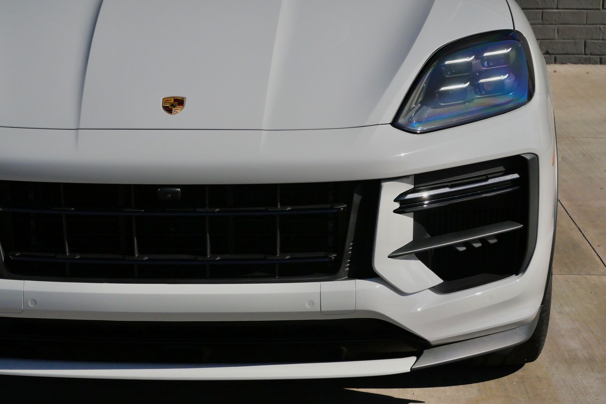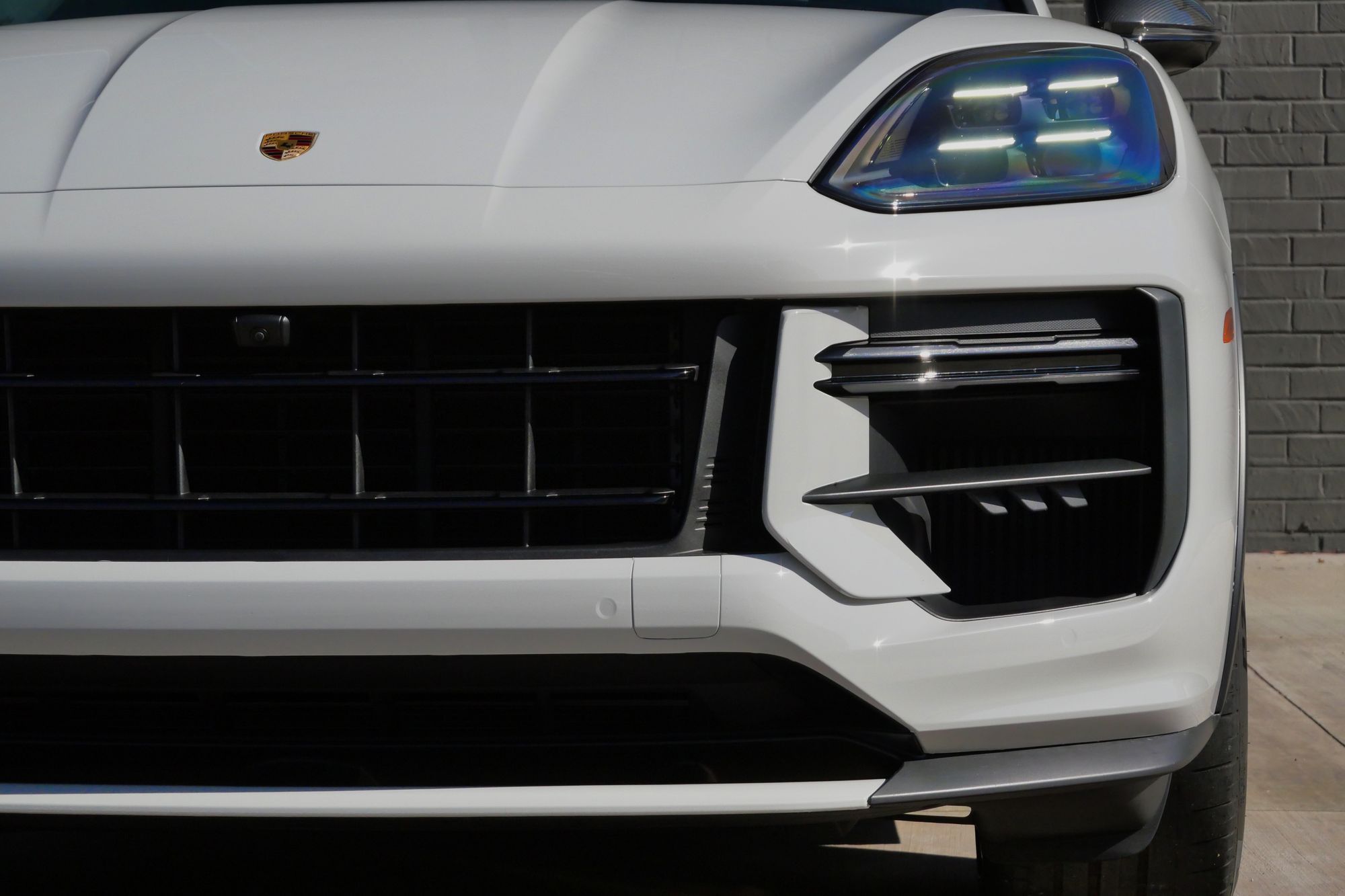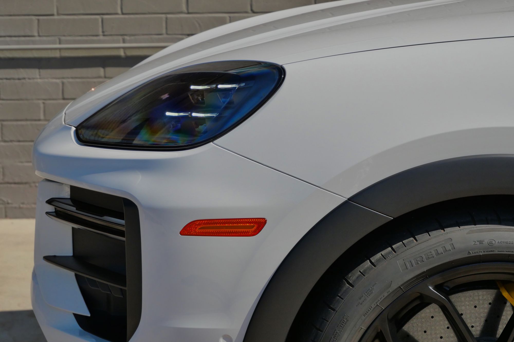 The Cayenne Turbo GT received a revised front fascia, headlights, and taillights for the 2024 model year, and this example was specified in white and has been covered in a Chalk vinyl wrap. Details include a carbon-fiber roof, rear diffuser, mirror caps, and upper wing accents as well as soft-close doors, thermally and noise-insulated glass, puddle-light projectors, Exclusive Design taillights, an Exclusive Design fuel cap, and a rear spoiler.