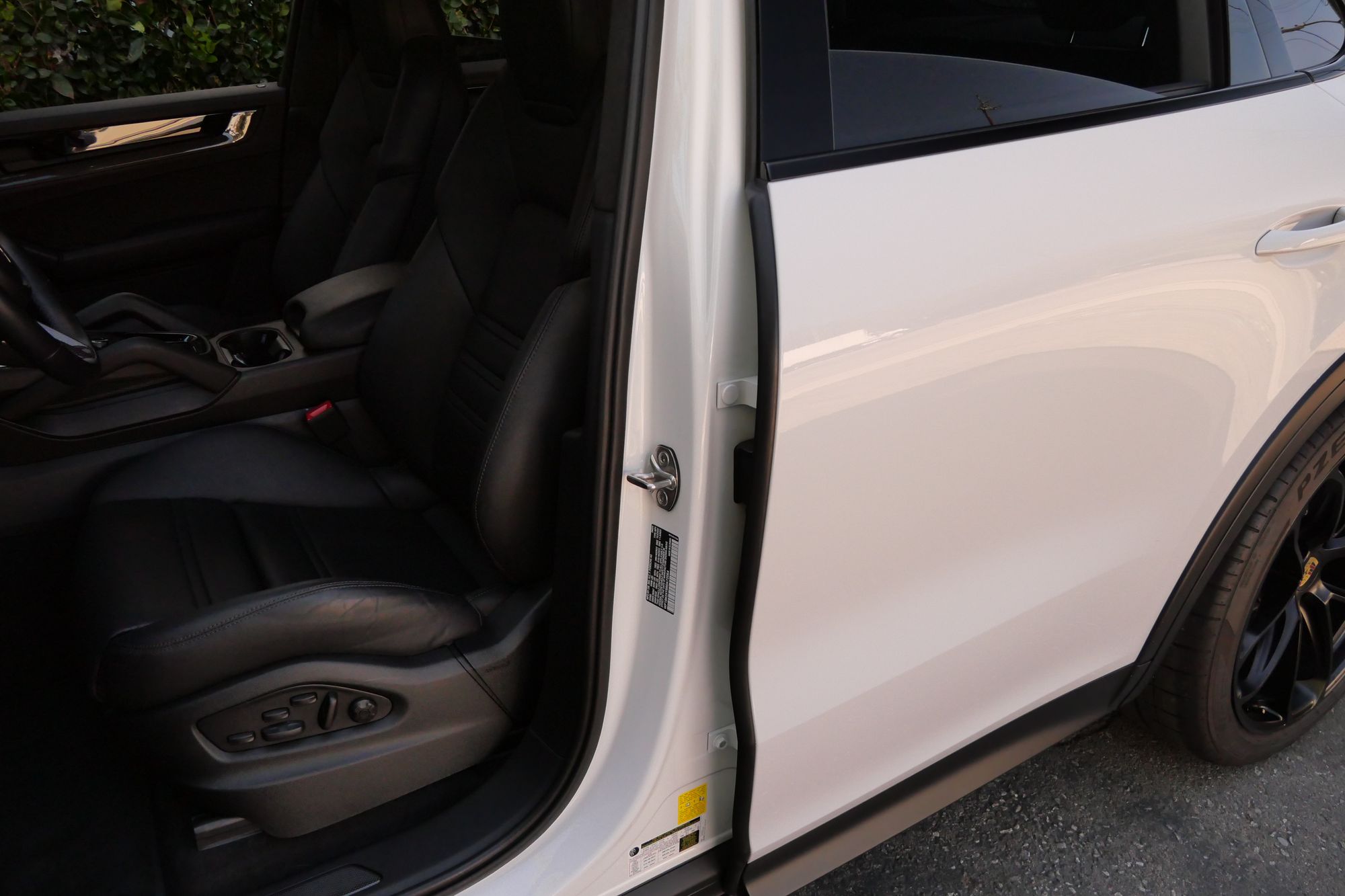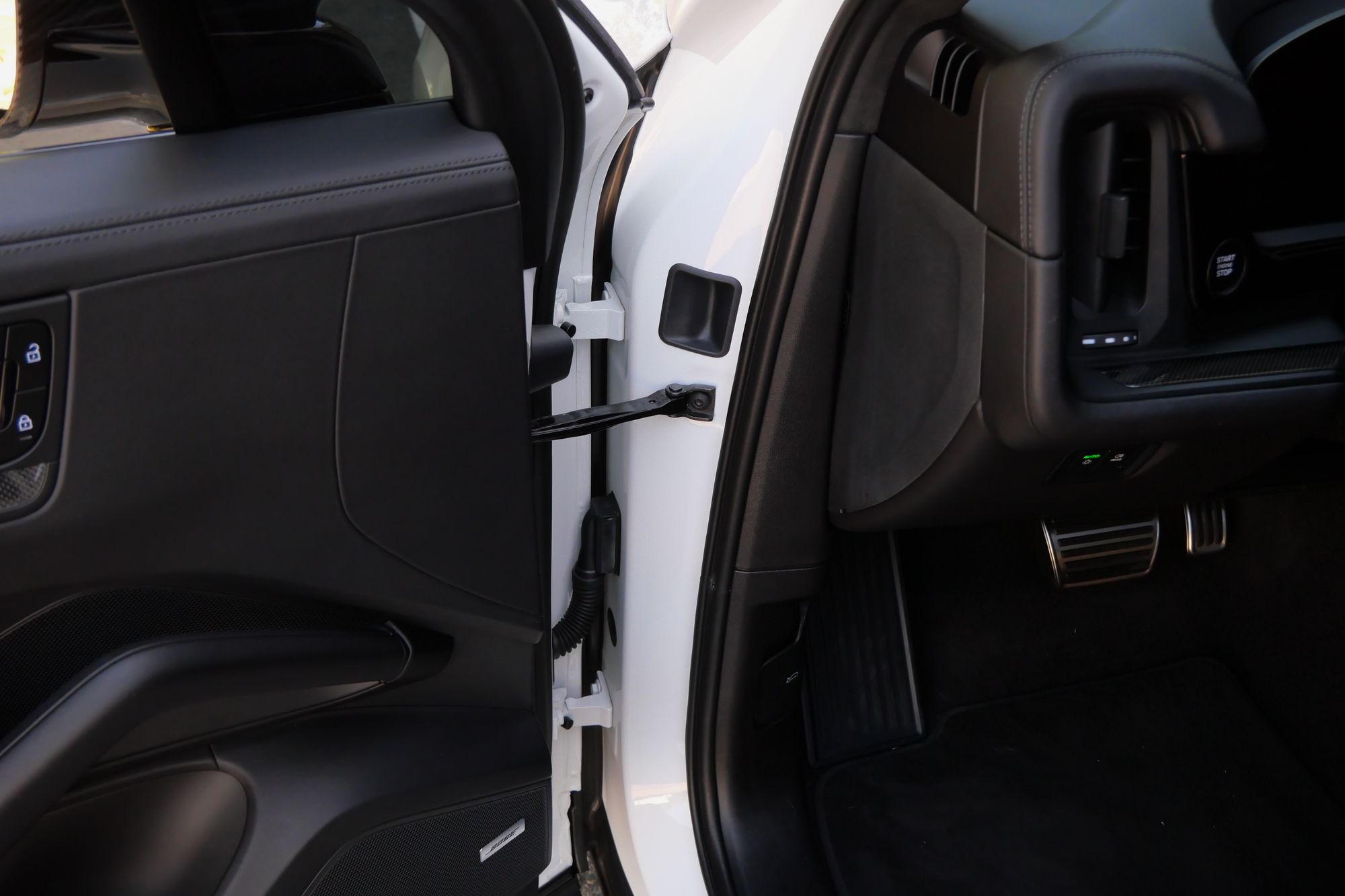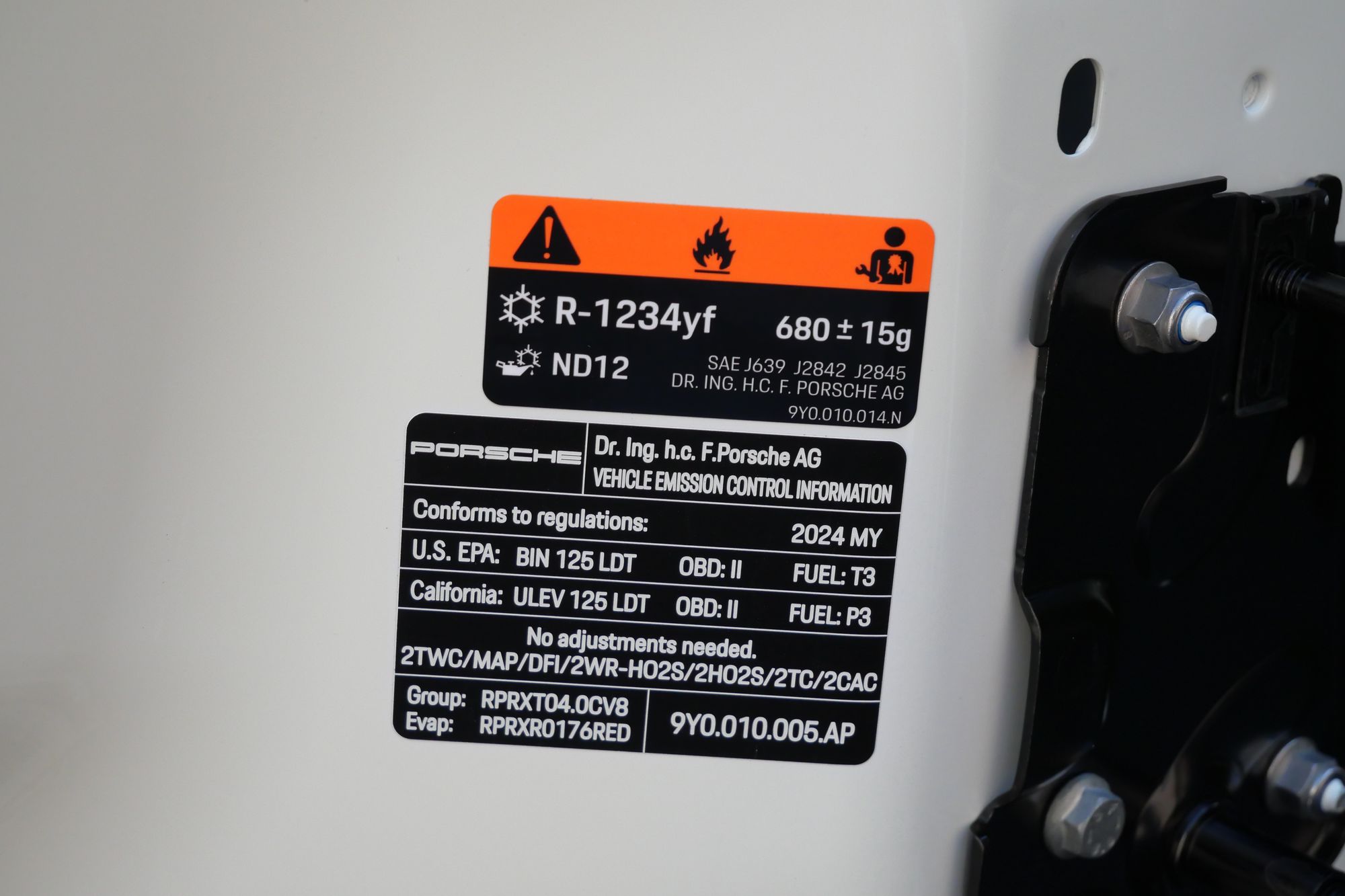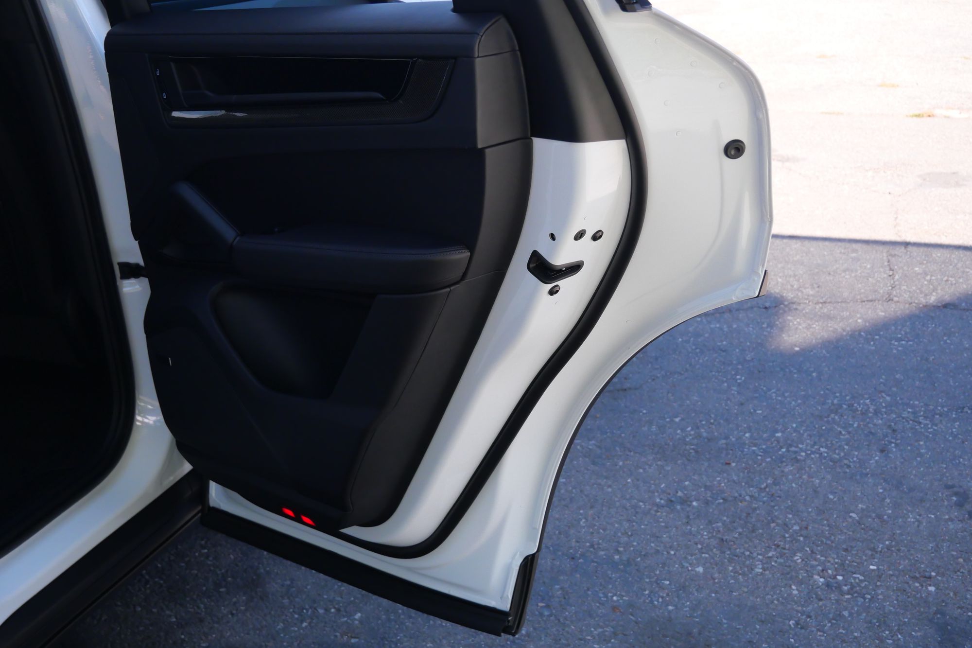 The Cayenne Turbo GT received a revised front fascia, headlights, and taillights for the 2024 model year, and this example was specified in white and has been covered in a Chalk vinyl wrap. Details include a carbon-fiber roof, rear diffuser, mirror caps, and upper wing accents as well as soft-close doors, thermally and noise-insulated glass, puddle-light projectors, Exclusive Design taillights, an Exclusive Design fuel cap, and a rear spoiler.