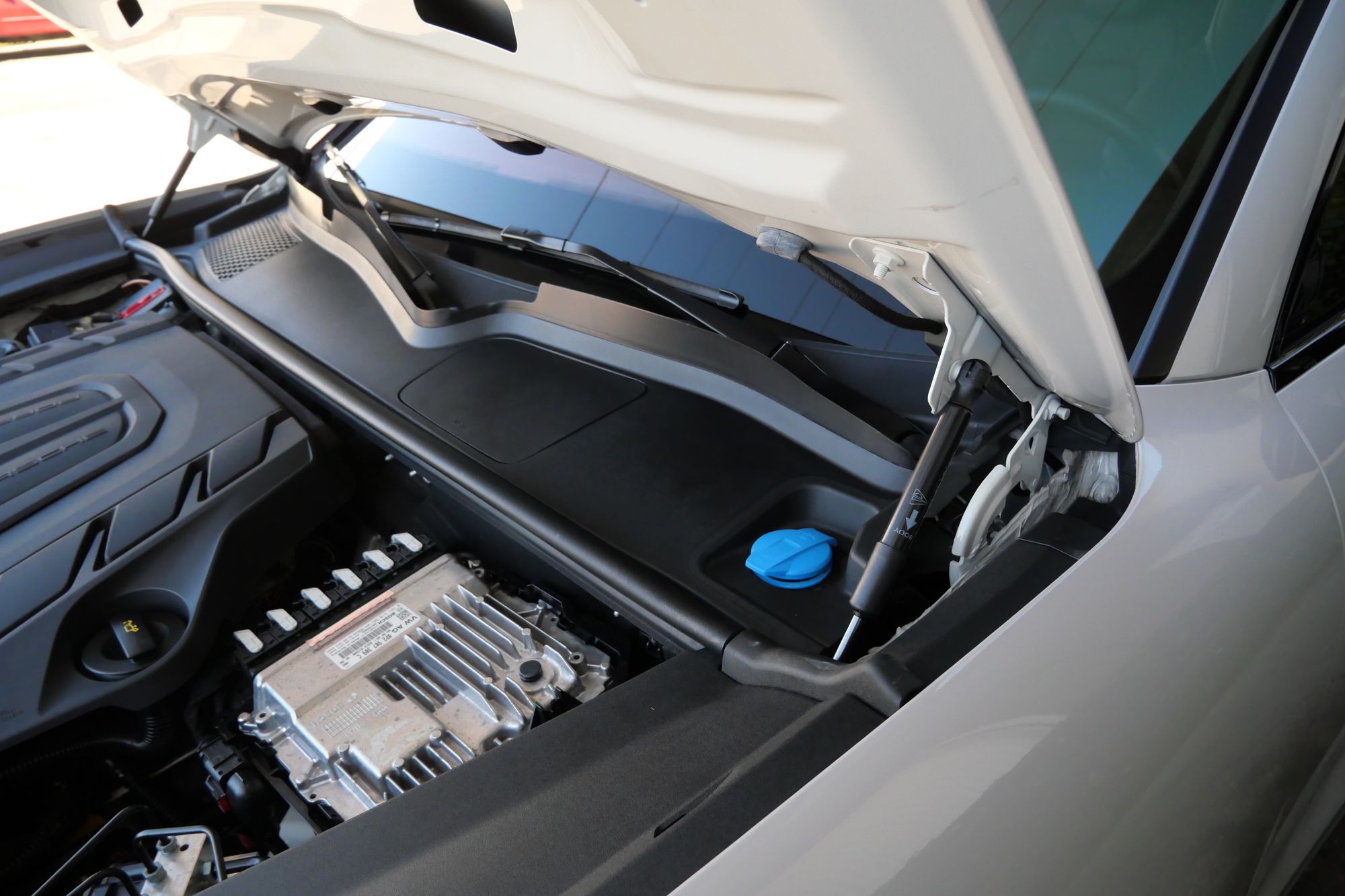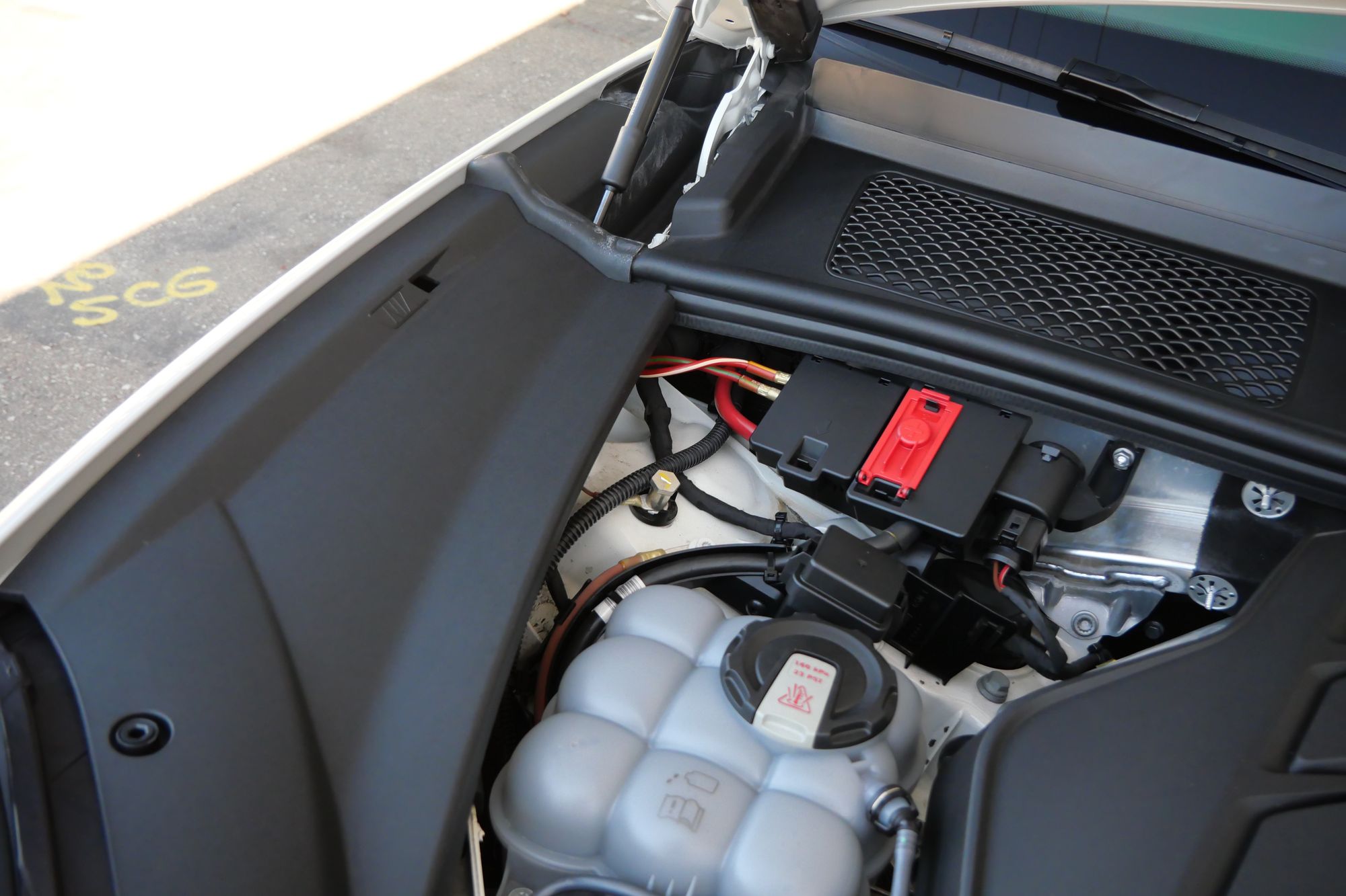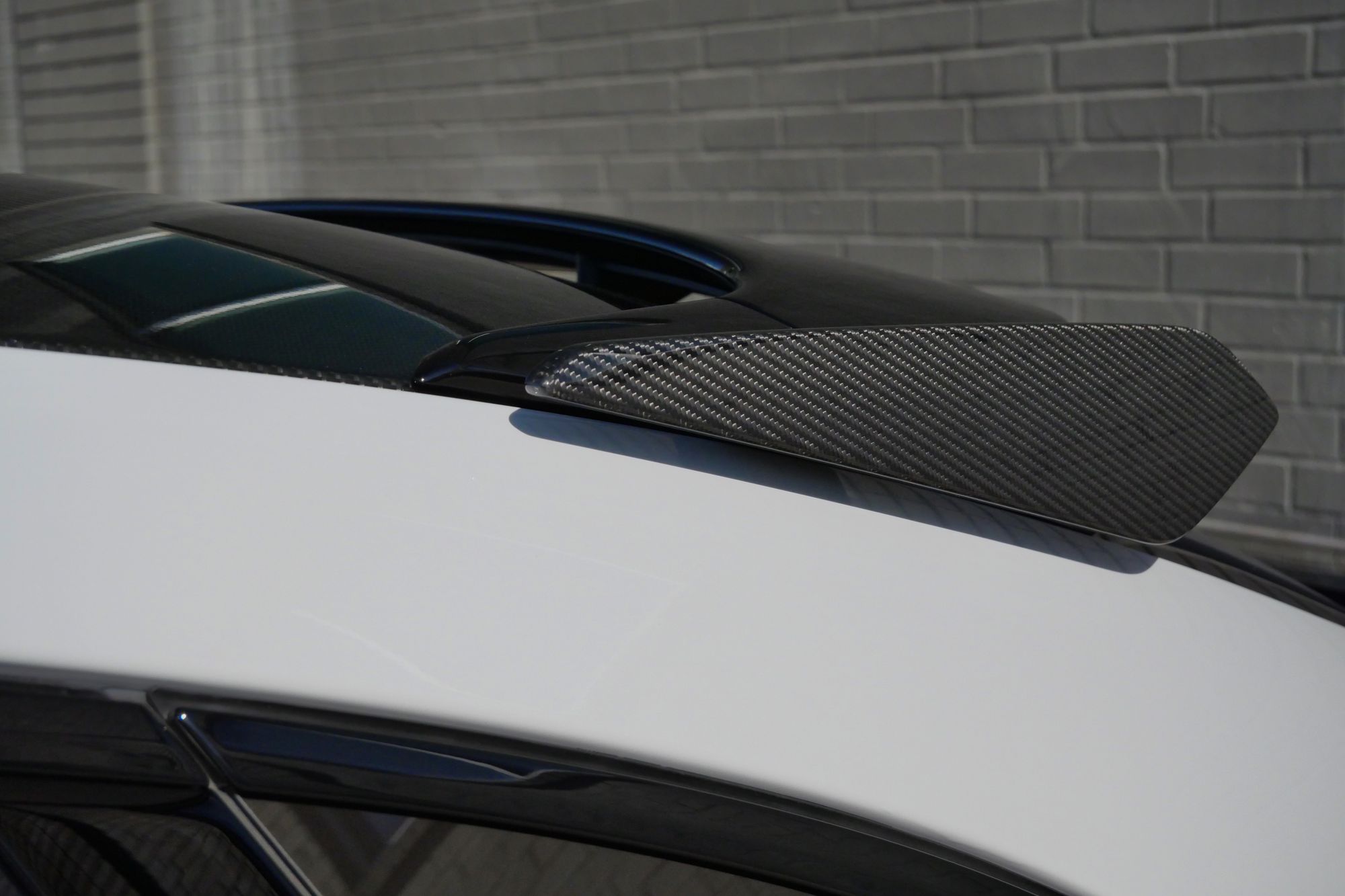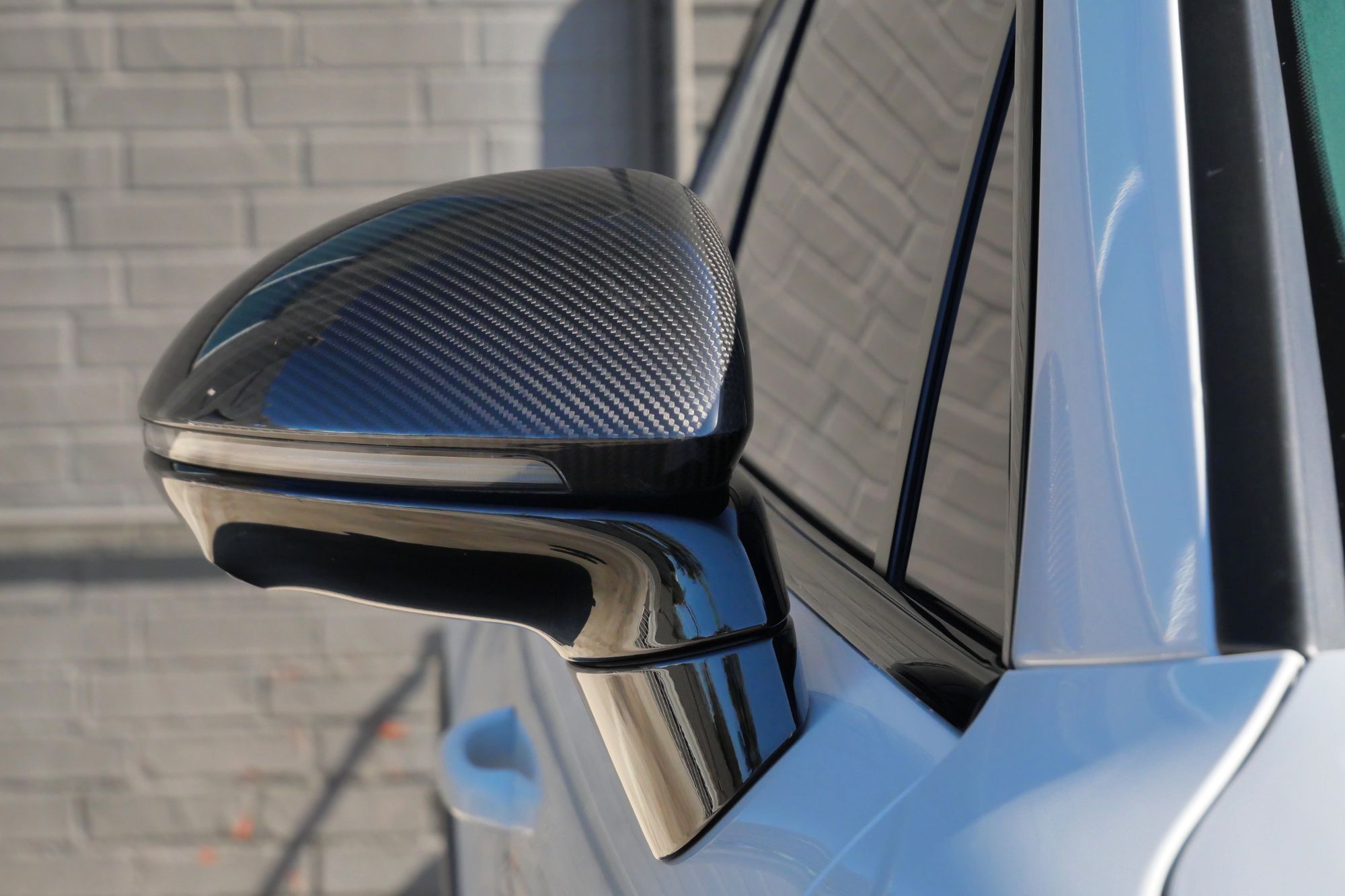 The heated leather-wrapped GT Sport steering wheel features carbon-fiber accents and frames a 12.6″ configurable digital instrument cluster with an odometer that indicates 14k miles. The twin-turbocharged 4.0-liter V8 was factory rated at 650 horsepower and 626 lb-ft of torque. Power is sent to all four wheels through an eight-speed Tiptronic S automatic transmission and a water-cooled all-wheel drive system